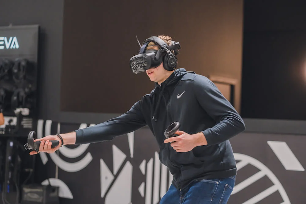 EVA repousse les limites du gaming en créant des espaces de jeu physiques équipés des technologies VR les plus avancées. Dans ces arènes de 5400 sq ft, les joueurs s’affrontent ou coopèrent sur des jeux exclusifs conçus par EVA.